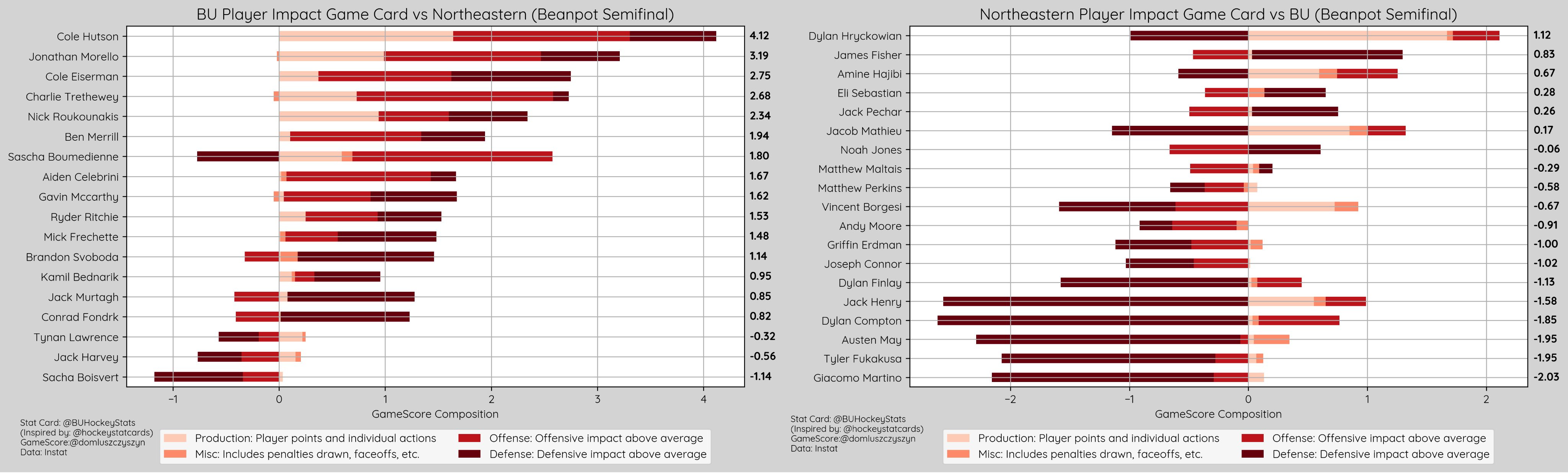 Cole Hutson has his second best career Game Score performance only behind last year’s Beanpot semifinal vs. Harvard (7.2736).