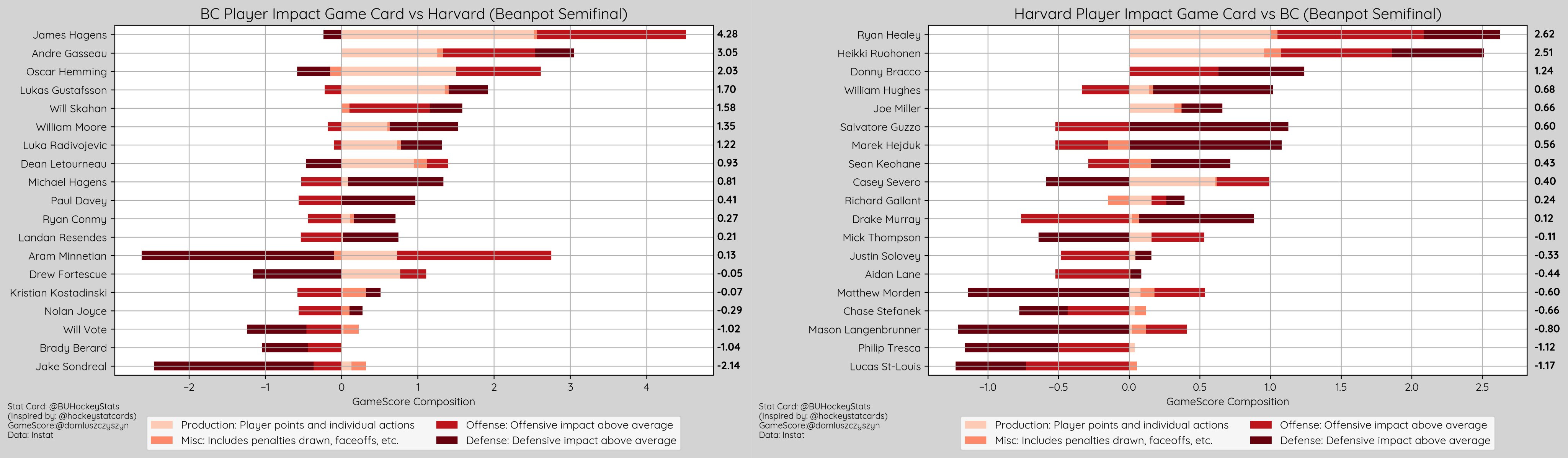 The Eagles move on to their second straight Beanpot Championship game for the first time since 2013 and 2014—both times facing NU and winning. The win was BC’s 14th over Harvard in the Beanpot semifinal and first since 2019. It was the Eagles first win over Harvard in a Beanpot semifinal by more than a goal since 2013, a 4-1 win.