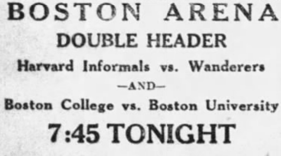 “FOUR HOCKEY TEAMS TO BE SEEN AT ARENA TONIGHT” read the headline in the Boston Globe on February 6th, 1918 of an article about Boston University’s first ever collegiate hockey game against a team who the Globe describes as the “Newton collegians”. That game began over a century of BU Hockey at a place that went by many names, originally Boston Arena, then Northeastern Arena, now Matthews Arena, and sometimes referred to simply as “the Arena”. In 104 seasons of BU Hockey, the Terriers played a game at the Arena in 99 of them, the only exceptions: 1919-20, 1971-72, 1973-74, 1979-80, and 2020-21.
