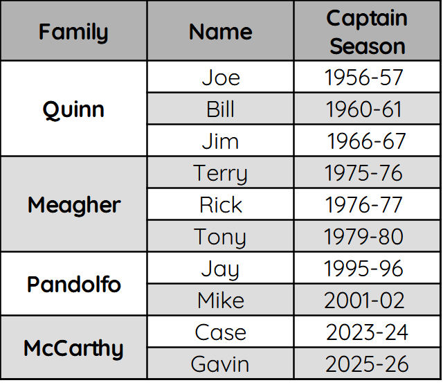 The Cole Train will continue servicing the Boston University campus, with leading goalscorer Cole Eiserman (25-11—36) and assists leader and National Rookie of the Year Cole Hutson (14-34—48) returning for their sophomore season. The Coles join Jack Harvey (11-16—27) as assistant captains. Gavin McCarthy captains the Terriers, making the McCarthy brothers the 4th family to have multiple brothers captain the Terriers.