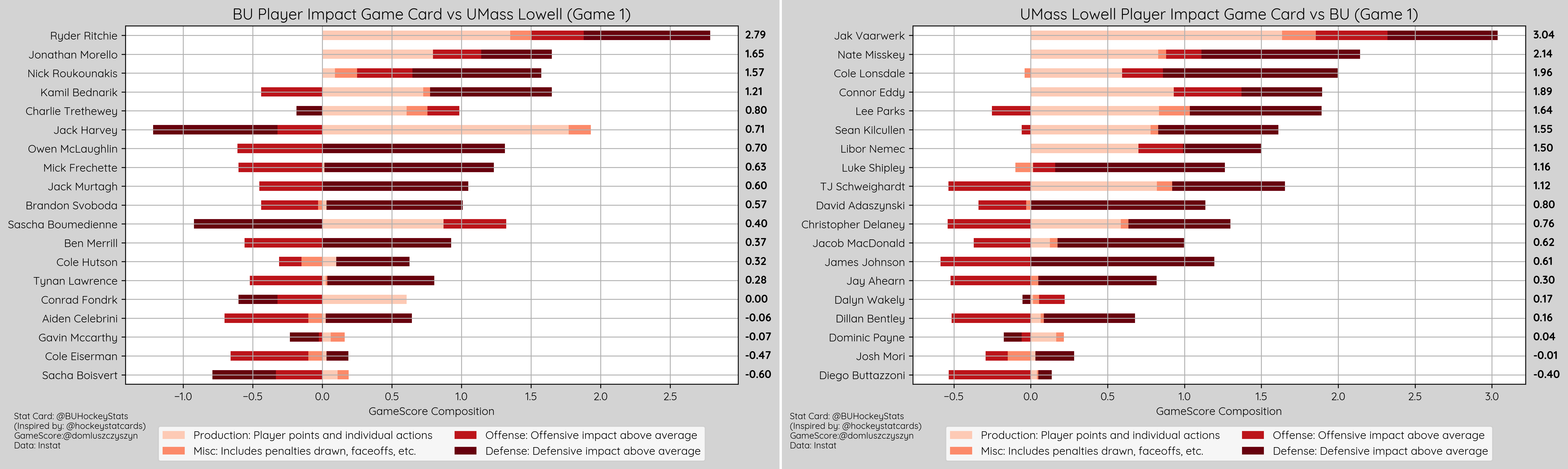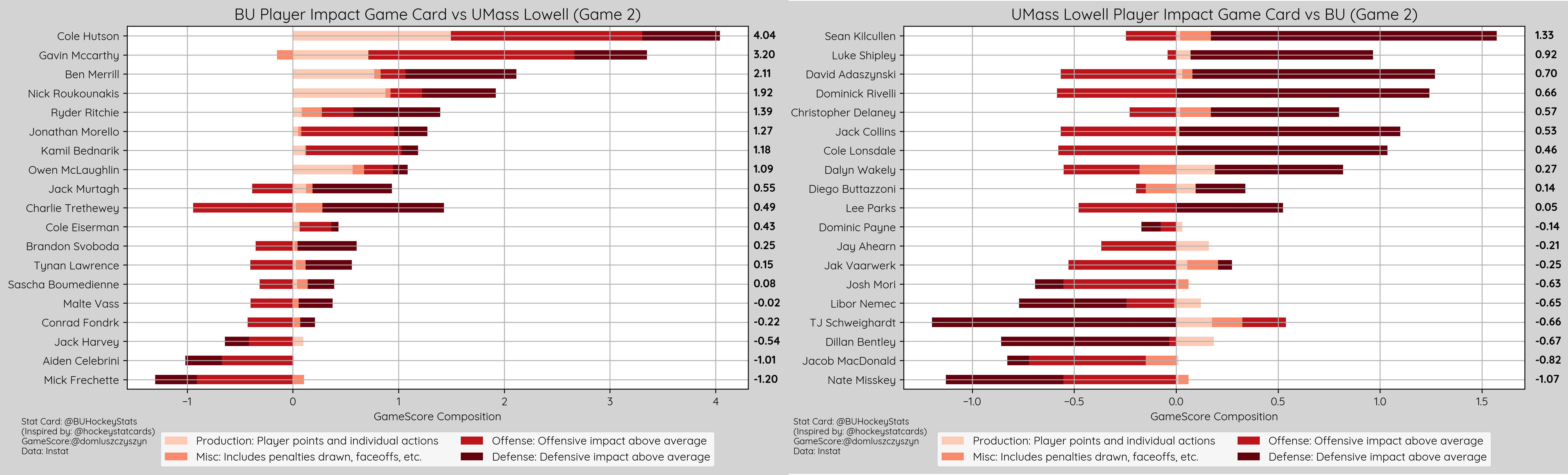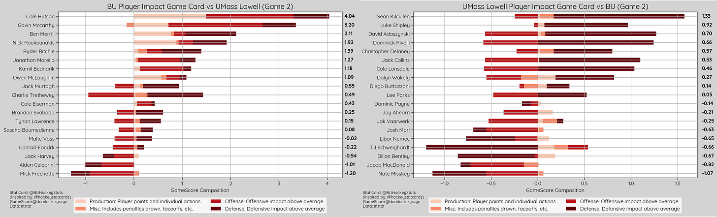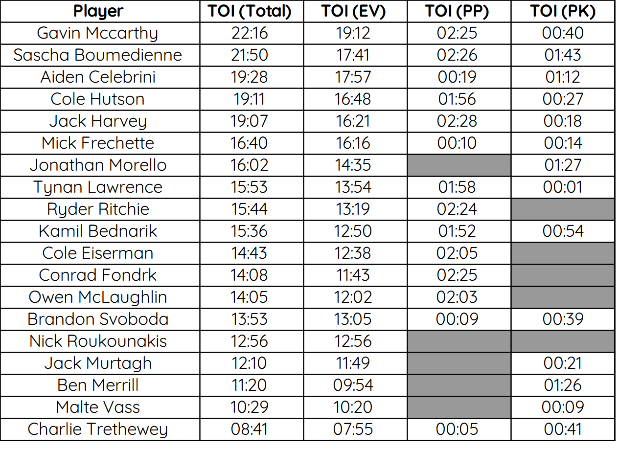 Cole Hutson recorded his 2nd best Game Score of the season after November 1st vs. Maine (4.116) and his 4th best of his career. Gavin McCarthy recorded 2nd best Game Score of the season following December 6th vs. Vermont (3.297)