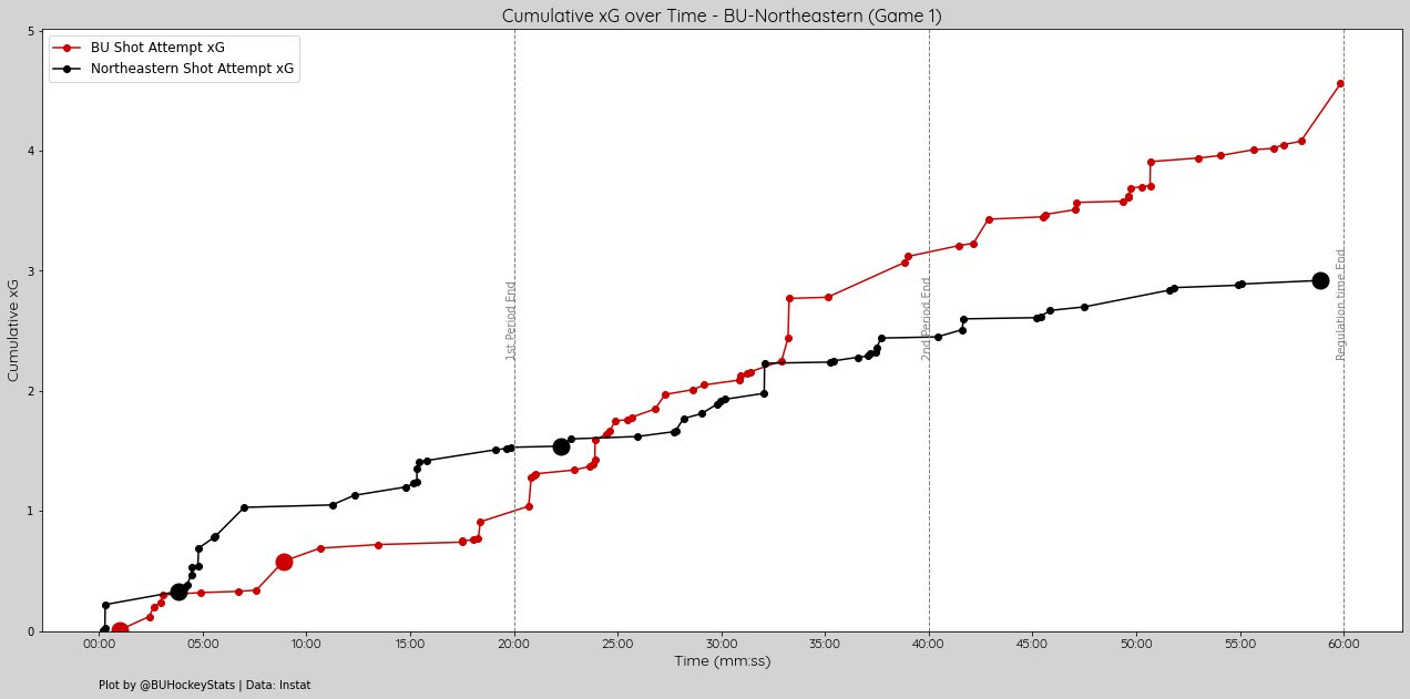 Per Period xG: 1st (1.09-0.76, BU) 2nd (1.29-1.44, NU) 3rd (0.94-1.06, NU) OT (0.75-0.16, BU)