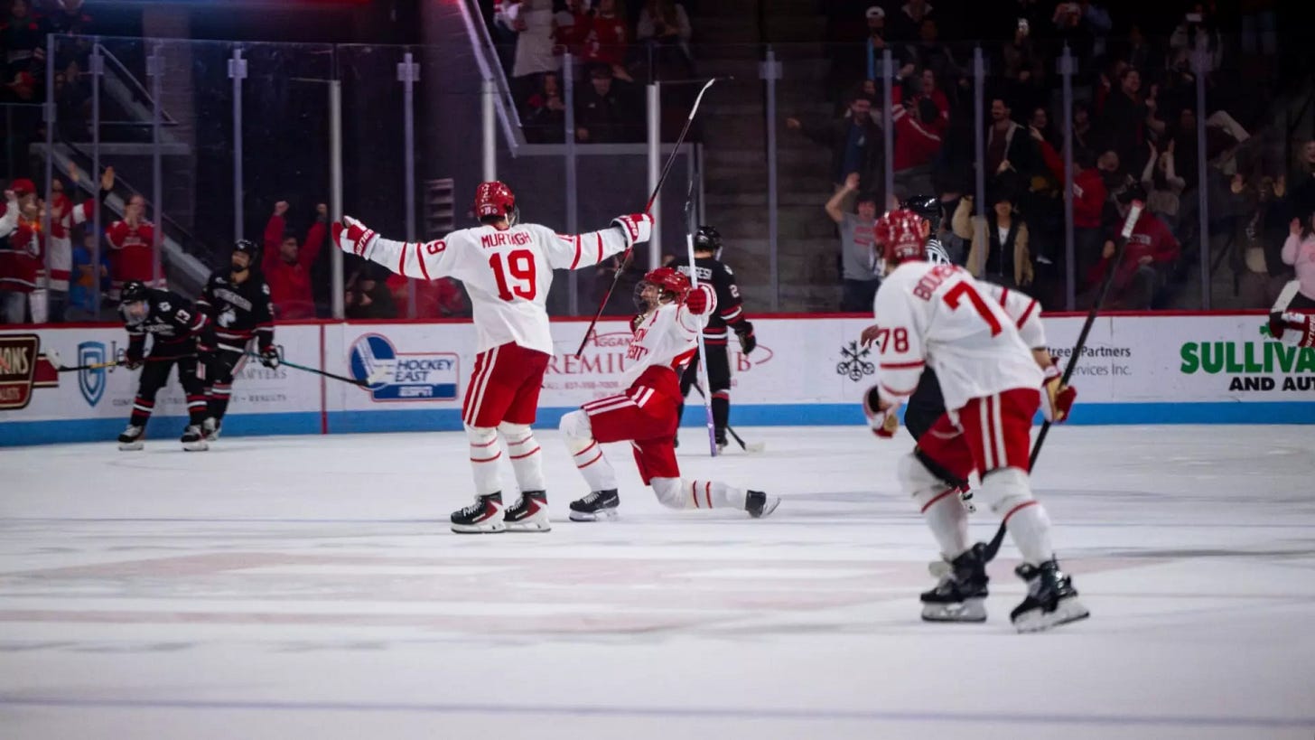 In overtime, after the Terriers early power play was evened up by a penalty. For the second straight home game, Cole Hutson lit the lamp in overtime, his giving him his third career multi-goal game and second career OT GWG.