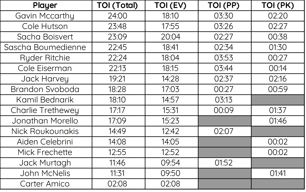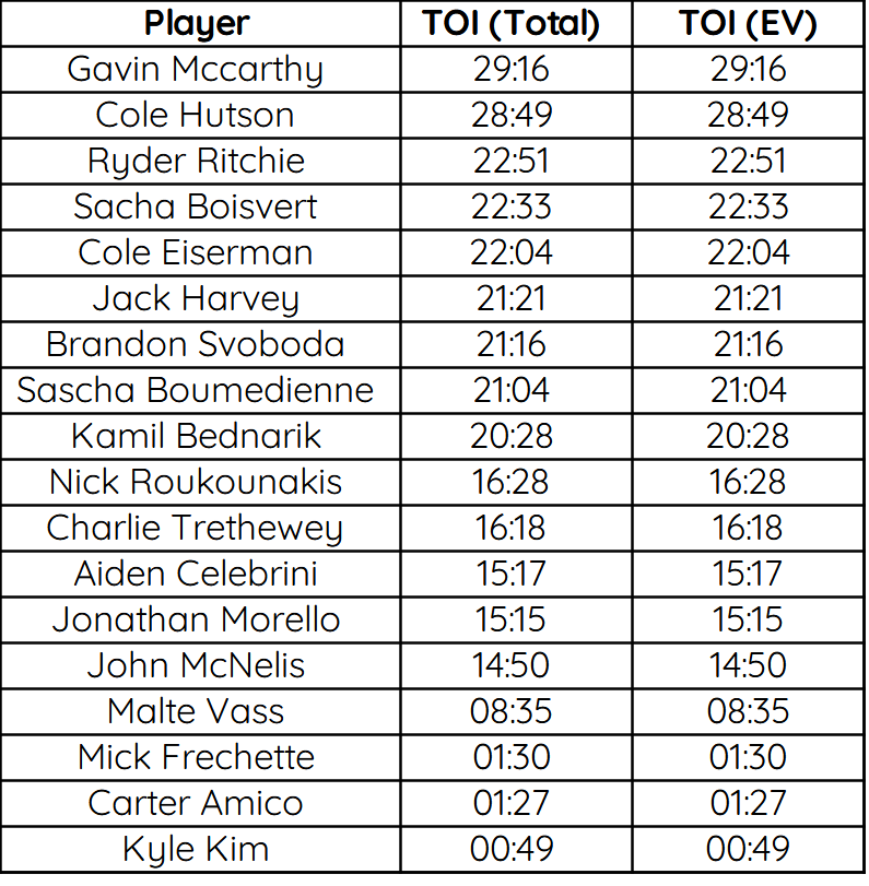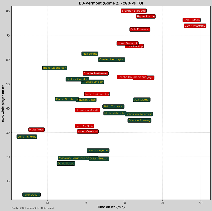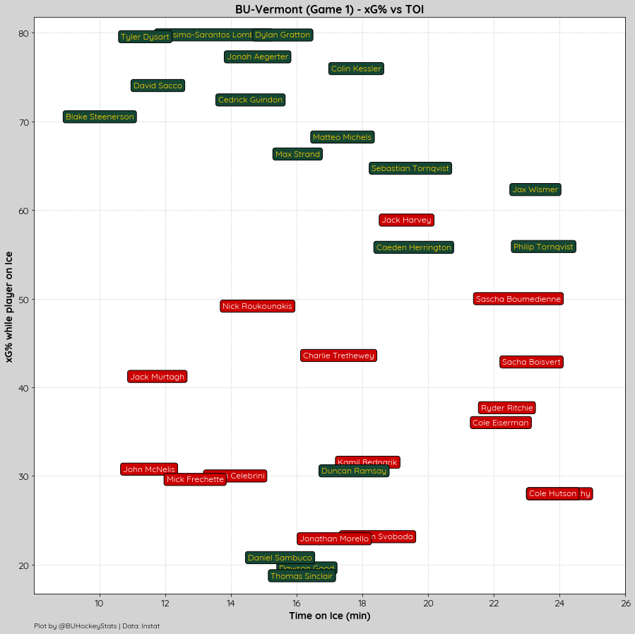 10 of 15 Terriers recorded an xG% over 50 with Brandon Svoboda leading the way with 80.12% in his 21 minutes on the ice.