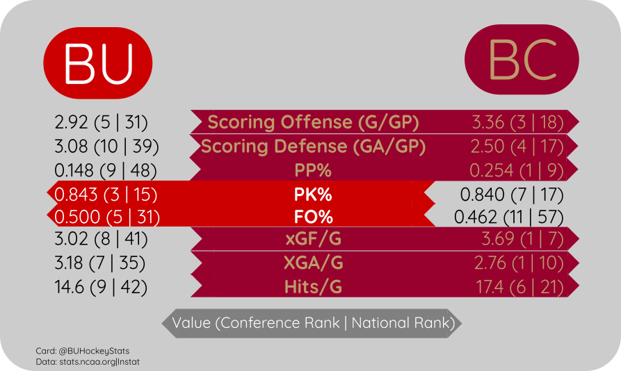 It is the first time since 1970 that BC’s last game before the Beanpot will be against BU, BU won that game at Boston Arena 8-3, John Danby recorded a hat trick and Larry Davenport recorded 5 pts (2g-3a)