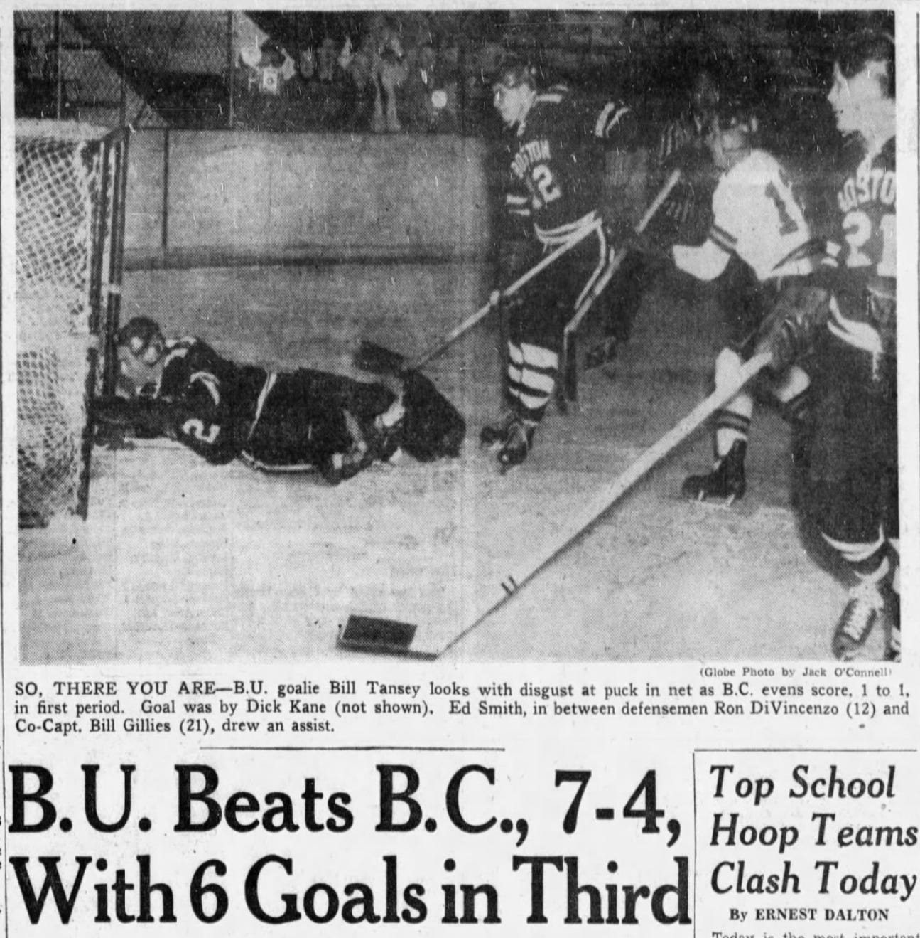Coincidentally BC’s game in 1958 between BU and the Beanpot was against Dartmouth at Dartmouth and BU’s game in 1970 between BC and the Beanpot was also against Dartmouth was at Dartmouth