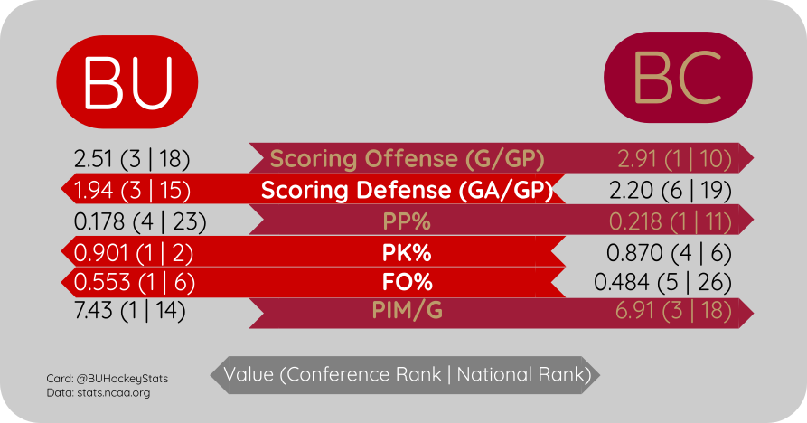 This will be the 3rd Hockey East Tournament semifinal matchup between the teams (2009, 2012, 2019), with the last also being BU’s last semifinal appearance.