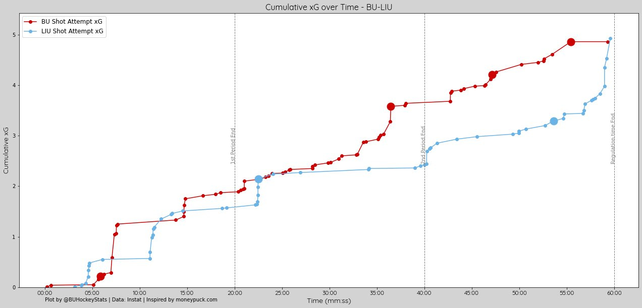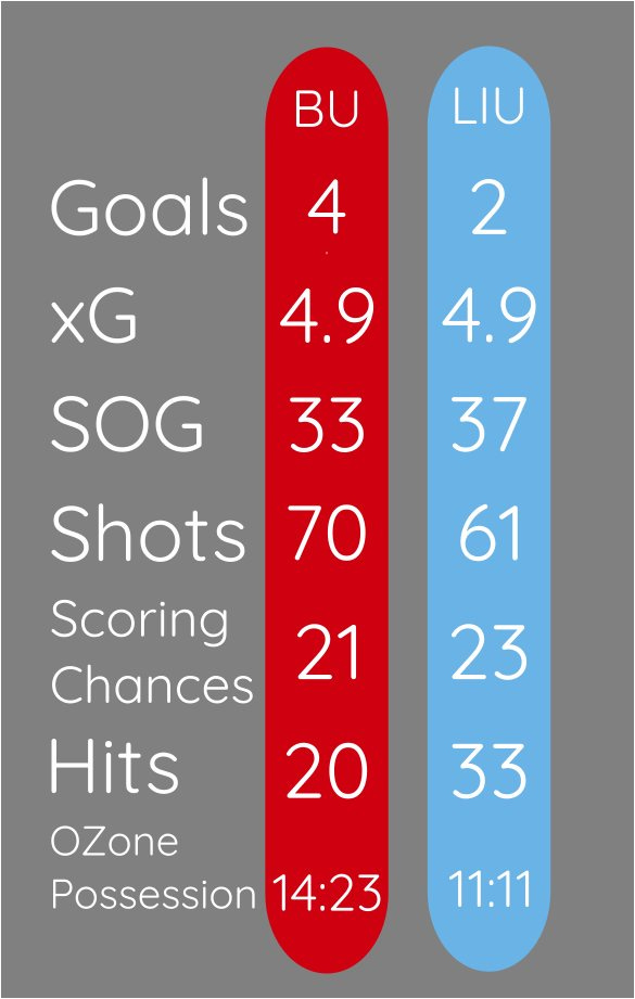 Per Period xG: 1st (1.87-1.57, BU), 2nd (1.77-0.85, BU), 3rd (1.22-2.51, LIU)