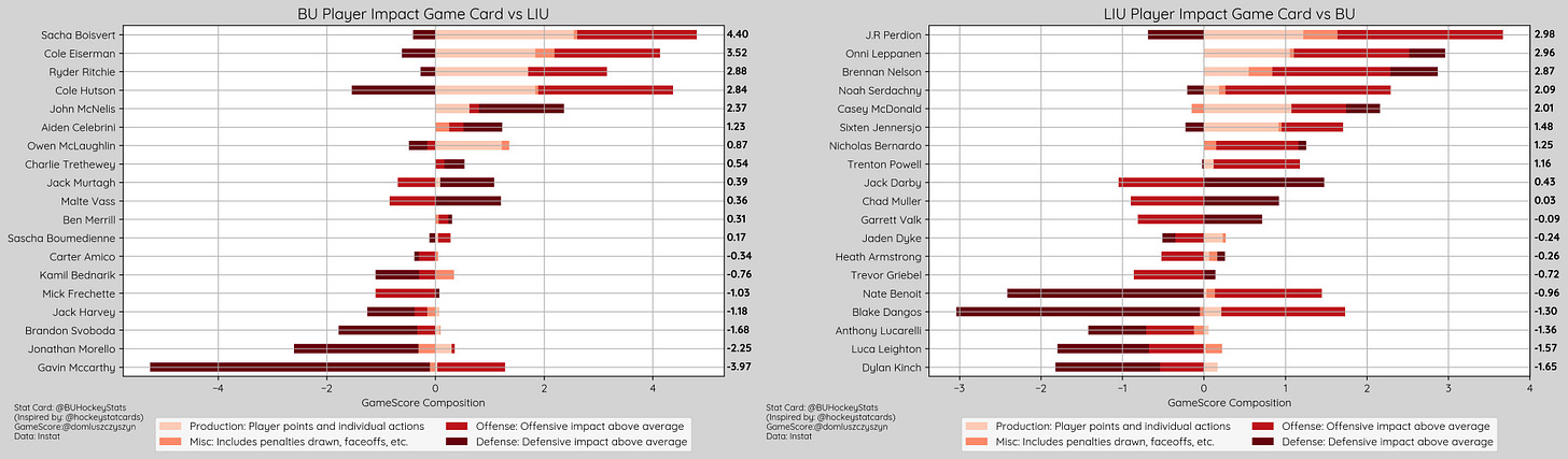 In the second, LIU tied things up at 2:30 in the period. Before NCHC Rookie of the Year and newcomer Sacha Boisvert gave the Terriers back the lead on the power play at 16:40 in the period. Boisvert also scored in his North Dakota debut last season, also scoring late in the 2nd in that game.