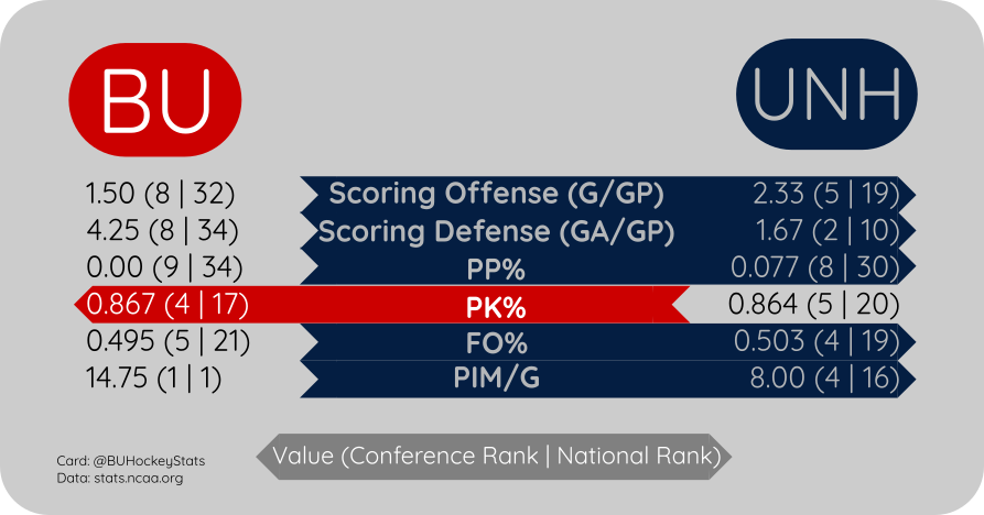 The Terriers open their Hockey East season vs. the UNH Wildcats, their most played Hockey East opener (5) however it is the first time they’ve opened their Hockey East season against UNH at home since 2008.