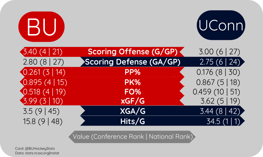 Despite only being in Hockey East for 11 seasons, BU has played UConn in their Hockey East opener 5 times in that span, their most of any team. It is also one of only 2 teams in that span they started the season against multiple times—UMass Lowell twice.
