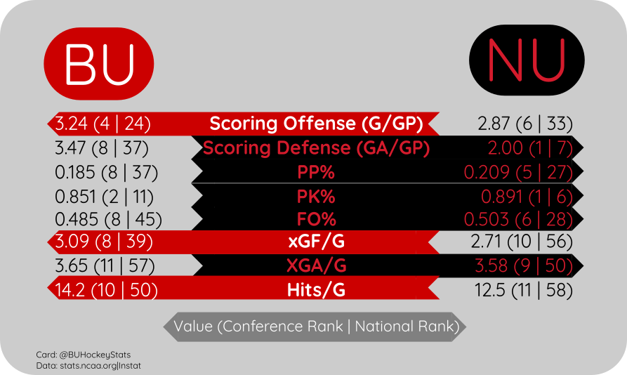 BU has 41 wins vs. NU as a resident of Boston Arena and 41 wins vs. NU as a visitor to Boston (Matthews) Arena