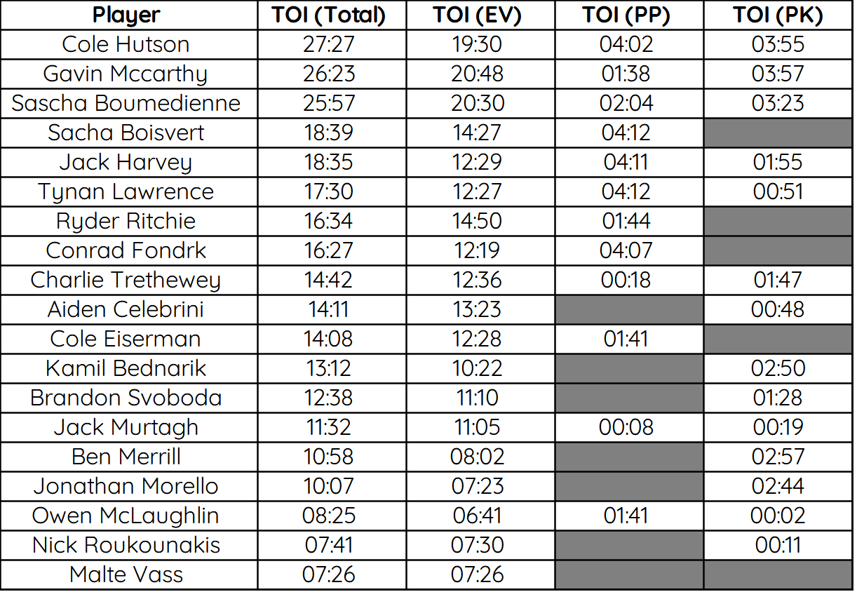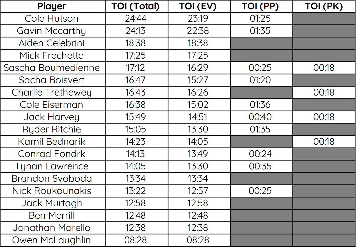 Tynan Lawrence (87.5), Charlie Trethewey (82.65) and Conrad Fondrk (80.77) led all players with an xG% over 80.