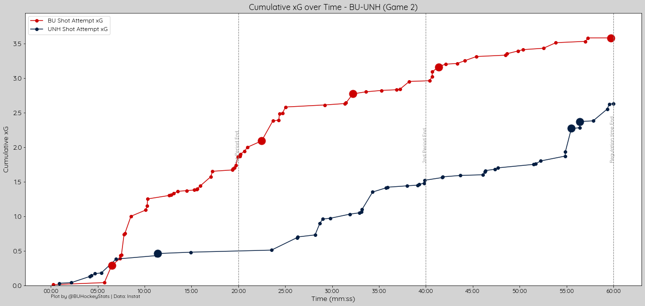 After scoring their first goal, BU took the xG edge and ballooned it throughout the game.
